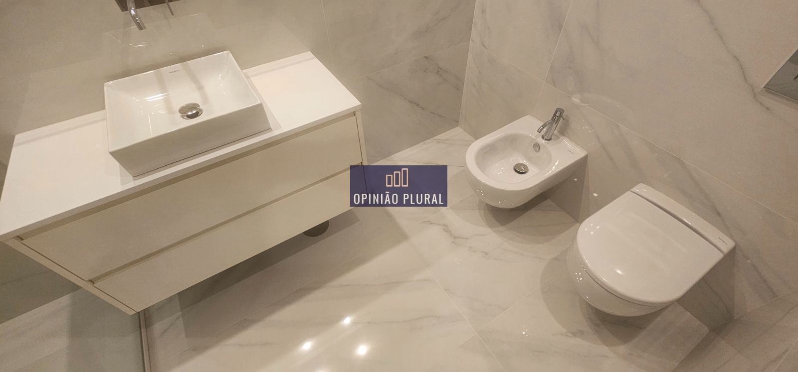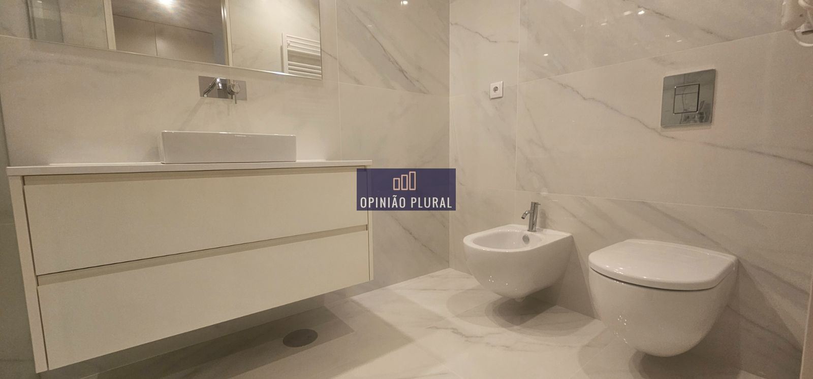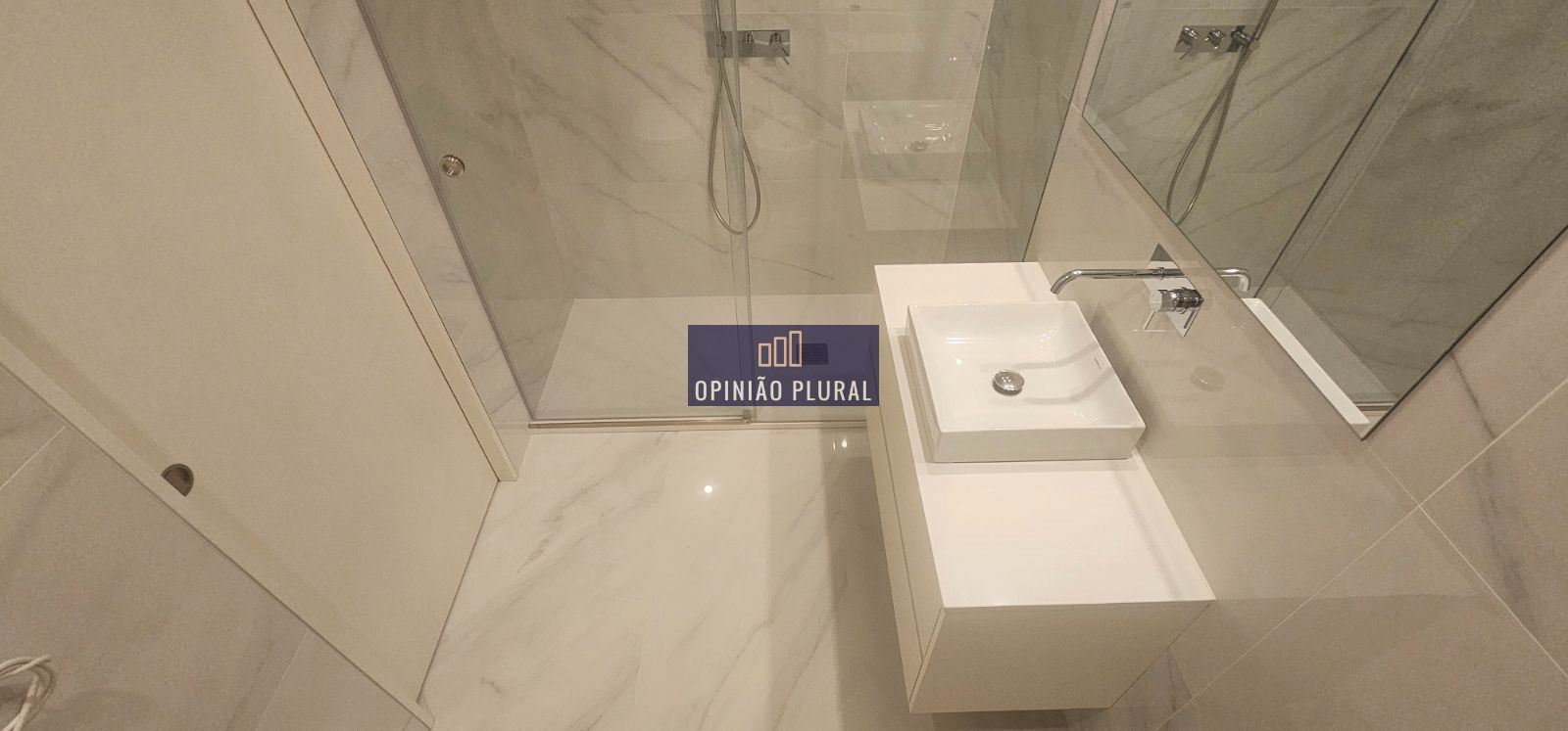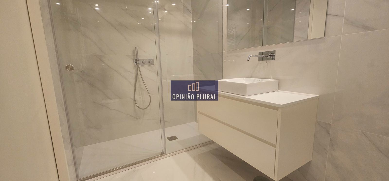 • Casa de banho com base de duche extraplana, louças suspensas e material cerâmico retificado premium