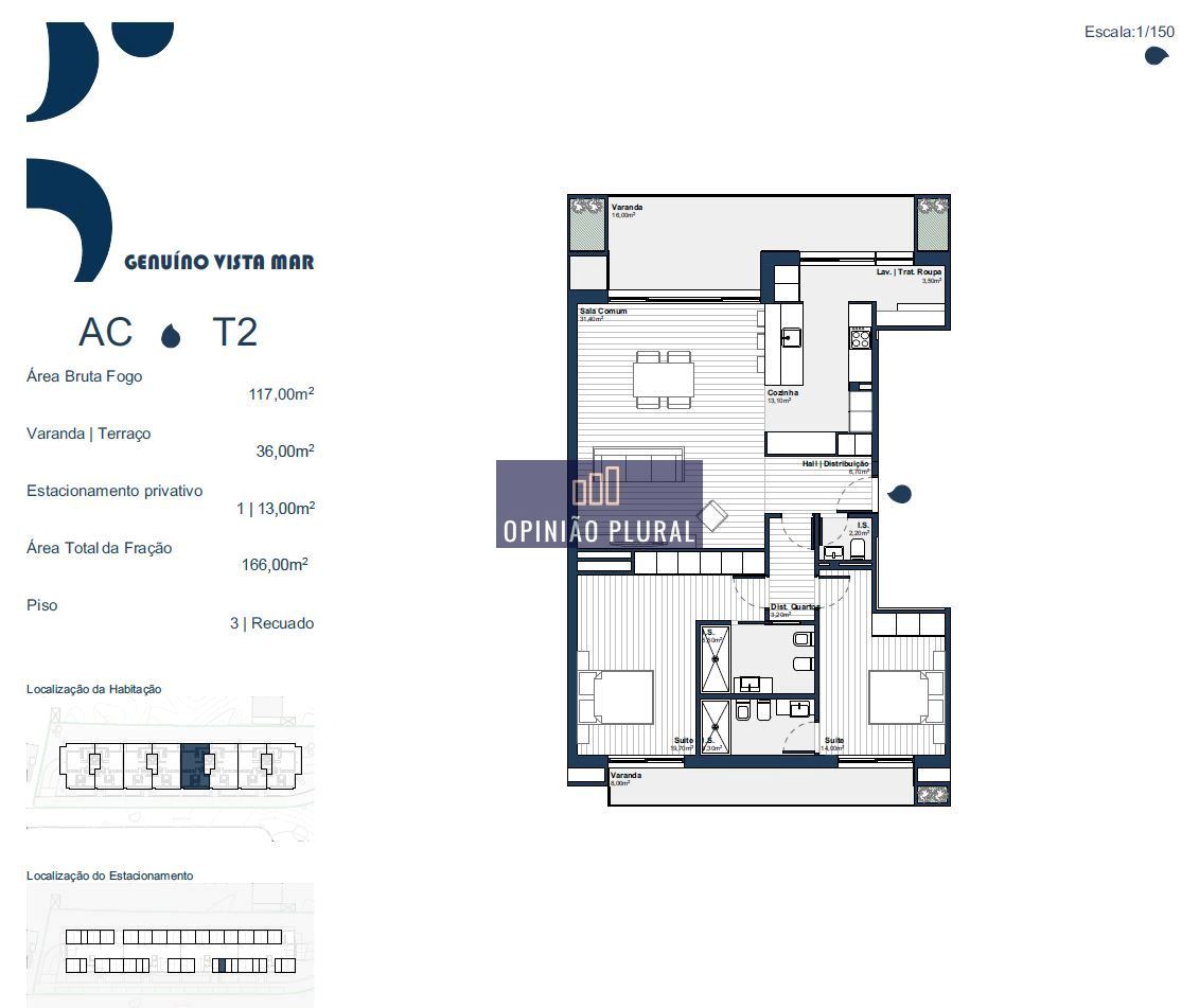 O Genuíno Vista Mar é um empreendimento de segmento Premium. Apresenta-se organizado por, r/chão, 1º, 2º e 3º piso, contemplando apenas dois apartamentos por piso que conta no total com 32 frações de tipologias T2 e T3. Este é um projeto que se destaca pela sua arquitetura moderna e pela excelente localização.