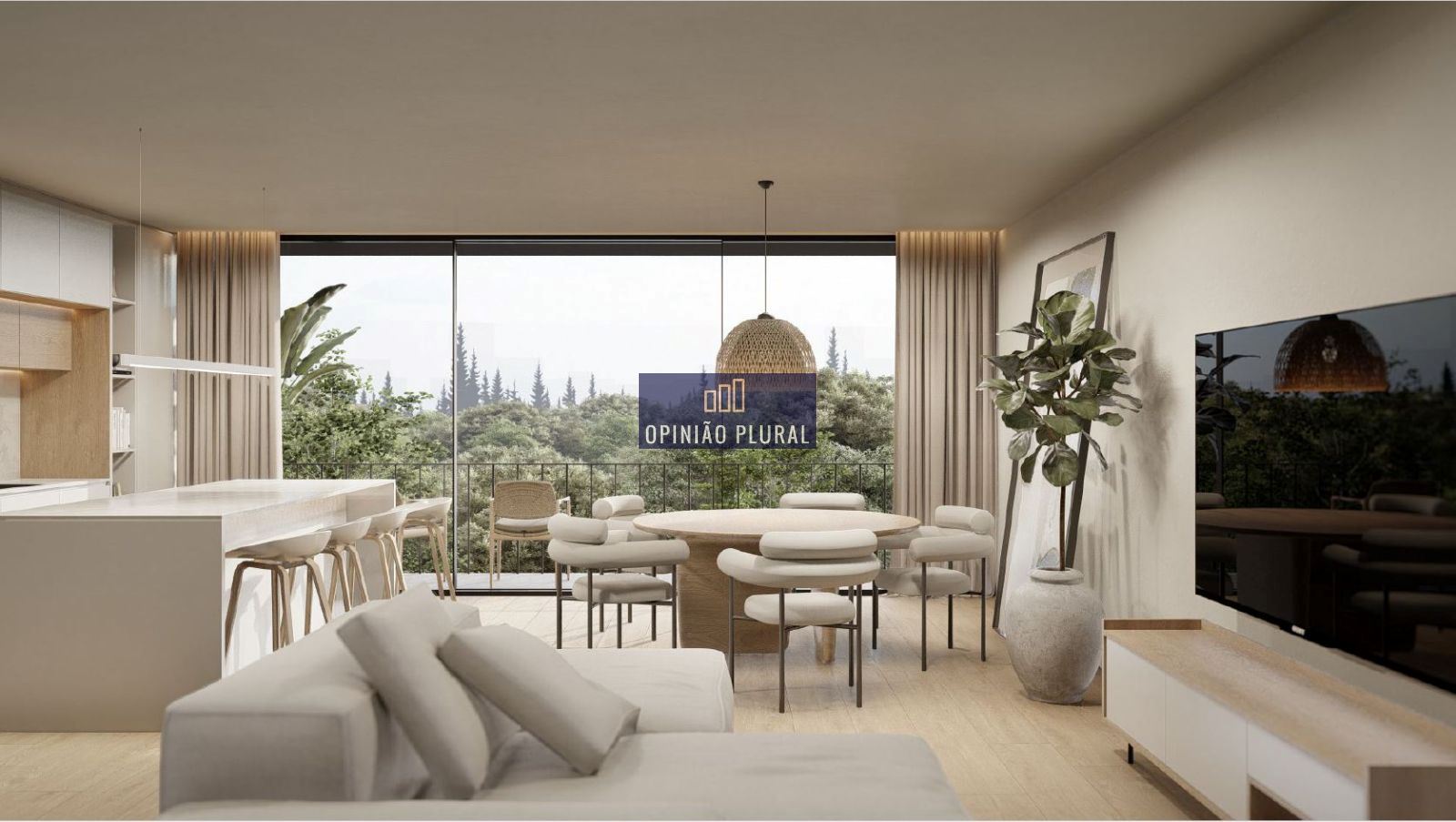 • Sala ampla confortável em ambiente open space com acesso direto à varanda