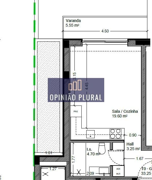 • Sala ampla confortável em ambiente open space com varanda voltada a Sul.